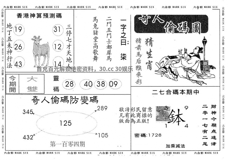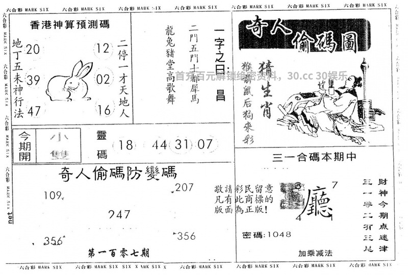 109期 | 鸡羊兔 | 马鼠猴 | 开:發00准 |